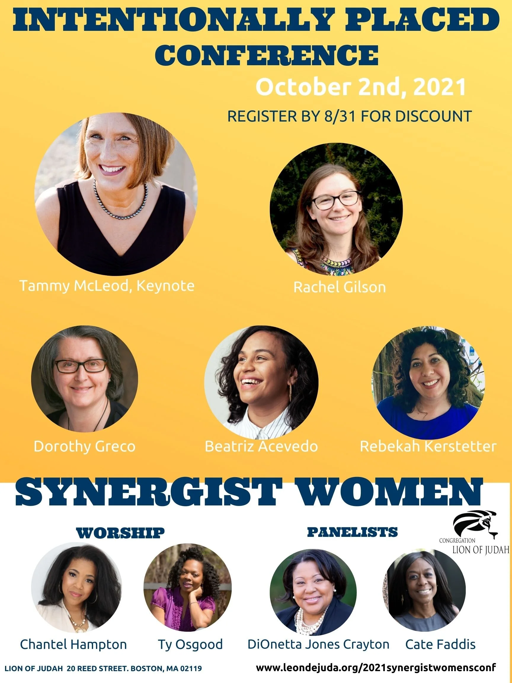 Back to All Events Synergist Women's 1st Annual Conference Saturday, October 2, 2021 8:00 AM 5:00 PM Lion of Judah 20 Reed Street Boston, MA, 02118 United States (map) Google Calendar ICS REGISTER